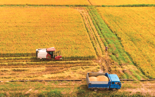 眼下,我市单季晚稻陆续进入成熟收割期。连日来,各地种粮大户们抢抓晴好天气全力抢收,收割机穿梭于金色稻浪间,奏响了丰收的“田园交响曲”。 郭华坚摄