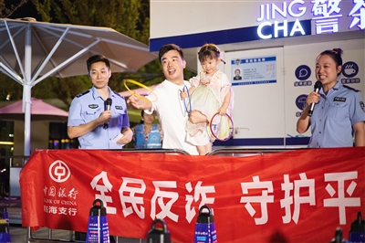 近日,大洋派出所联合中国银行临海支行,在灵湖广场举办主题为“全民反诈,守护平安”的反诈宣传活动,通过互动答疑、发放宣传册等环节,结合刷单返利、虚假投资、冒充客服等真实案例,让反诈知识在寓教于乐中走进群众心里,动员更多人参与到反诈行动中,共同筑牢财产安全的“铜墙铁壁”。图为市民参与套圈游戏学习反诈知识。